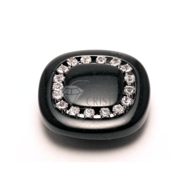 Bottone acrilico quadrato smussato con cornice di strass . Colore NERO + cristallo, disponibile in varie misure 15,17.50, 21.25,25MM