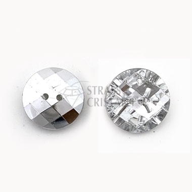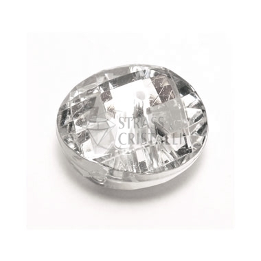 Bottone acrilico TONDO con sfaccettatura a scacchiera. Colore cristallo, disponibile in varie misure 11.5,13,15,18,21MM