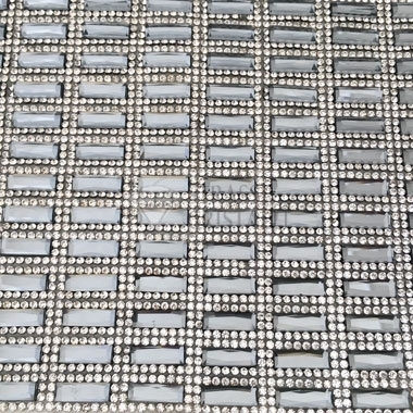 GLASS MESH fogli termoadesivi con disegno di strass. Strass centrale RETTANGOLO COLORE: strass piccoli CRISTALLO strass grandi RETTANGOLO BLACK DIAMOND 5X15mm Misura foglio 24x40cm