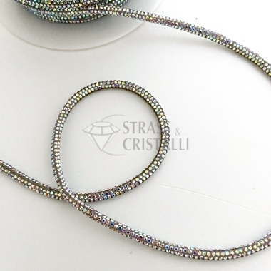 Cordino di strass con anima in cotone in continuo. Colore strass GOLDEN SHADOW Diametro 3mm circa.