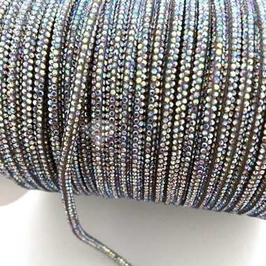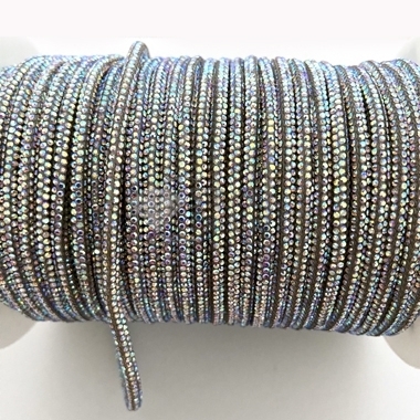 Cordino di strass con anima in cotone in continuo. Colore strass JET HEMATITE Diametro 3mm circa.