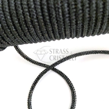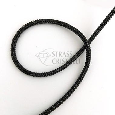 Cordino di strass con anima in cotone in continuo. Colore strass BLACK DIAMOND Diametro 3mm circa.