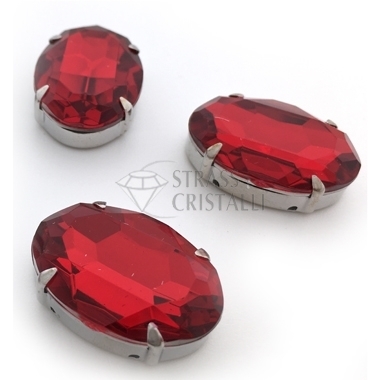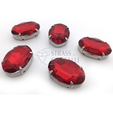 Pietra acrilica con castone da cucire di forma OVALE colore FUCHSIA.