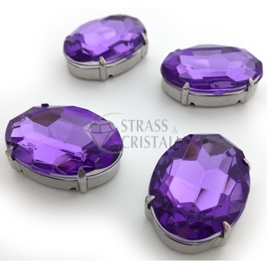 Pietra acrilica con castone da cucire di forma OVALE colore VIOLA.