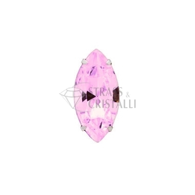 Pietra acrilica con castone da cucire di forma NAVETTA. Colore ROSA