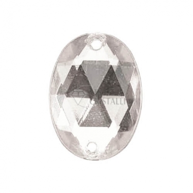 Pietra acrilica da cucire forma OVALE SFACCETTATO, colore CRISTALLO con fori.