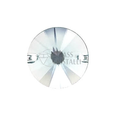 Pietra acrilica da cucire, forma TONDO RIVOLO con fori. Colore CRYSTAL.