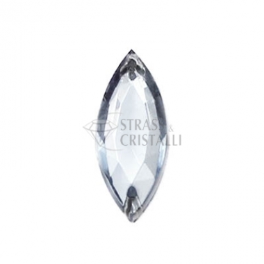 Pietra acrilica da cucire, forma NAVETTA con fori. Colore CRYSTAL.
