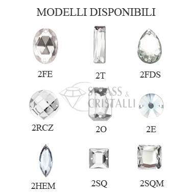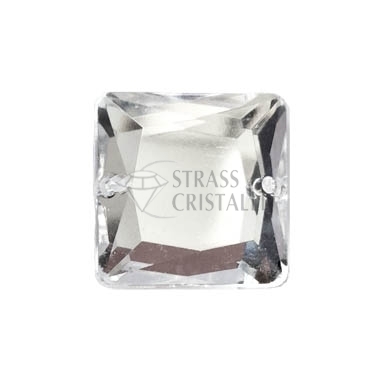 Pietra acrilica da cucire, forma QUADRATO SFACCETTATO con fori. Colore CRYSTAL.