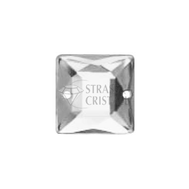 Pietra acrilica da cucire, forma QUADRATO GEOMETRICO con fori. Colore CRYSTAL.