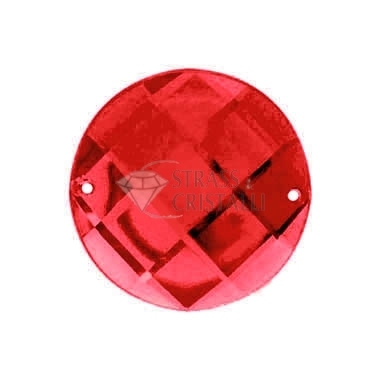 Pietra acrilica da cucire, forma TONDO SFACCETTATO con fori. Colore ROSSO.