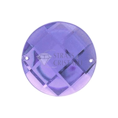 Pietra acrilica da cucire, forma TONDO SFACCETTATO con fori. Colore VIOLA.
