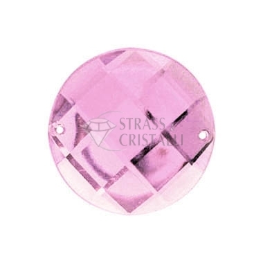 Pietra acrilica da cucire, forma TONDO SFACCETTATO con fori. Colore ROSA.