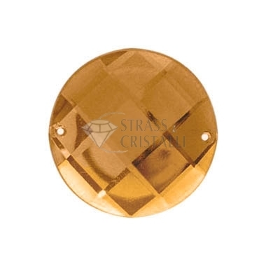 Pietra ACRILICA da cucire, forma TONDO SFACCETTATO con fori. Colore MARRONE.
