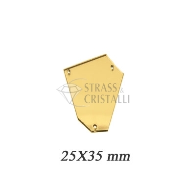 Specchietto acrilico da cucire TRAPEZIO , con film protettivo antigraffio. Dimensioni 25X30MM. Colore ORO. CONFEZIONI DA 10 PEZZI.