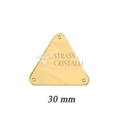 Specchietto acrilico da cucire TRIANGOLO , con film protettivo antigraffio. Dimensioni 30X45MM. Colore ORO. CONFEZIONI DA 10 PEZZI.