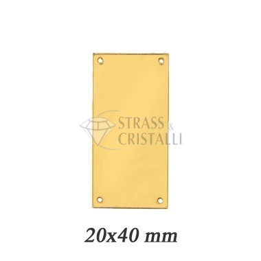 Specchietto acrilico da cucire RETTANGOLO , con film protettivo antigraffio. Dimensioni 10X35MM. Colore ORO. CONFEZIONI DA 10 PEZZI.