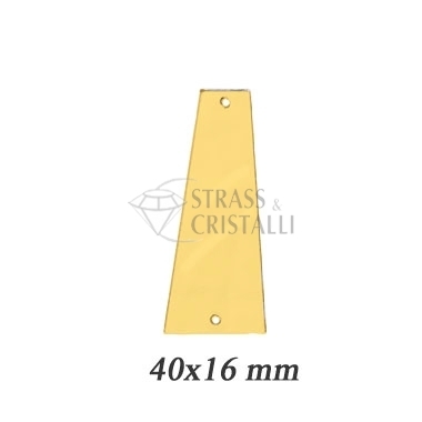 Specchietto acrilico da cucire TRAPEZIO , con film protettivo antigraffio. Dimensioni 25X30MM. Colore ORO. CONFEZIONI DA 10 PEZZI.